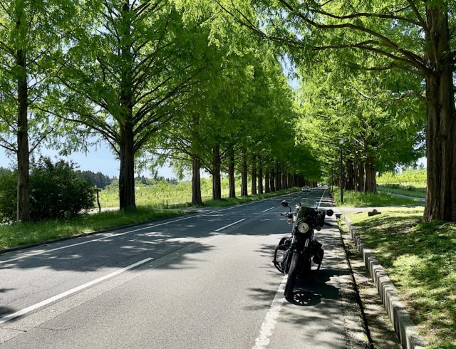 国道162→27→303と進み琵琶湖へ。国道161→県道287でメタセコイヤ並木を見に行く。メタセコイヤや針葉樹だが落葉するのでちょうど新緑の時期かな。