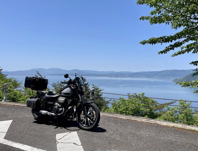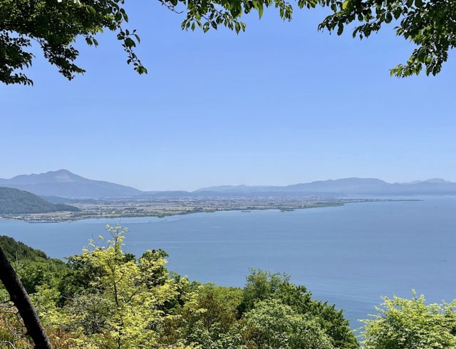 国道161に戻り、l国道303→県道557→513とすすんで奥琵琶湖パークウェイへ。両側に木があって展望はあまりないが、頂上の展望台まで行くと琵琶湖が見える。こちらはマキノ側。