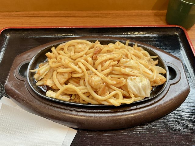 いつものホルモン焼うどん。作用まで行けば本場のお店があると思うが、ここはあまり混まないのがいいな。
