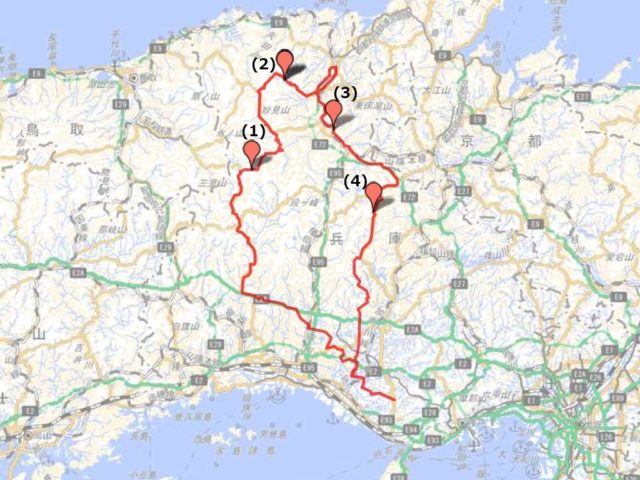 県道48→714で加保坂を越えて国道9へ。村岡で給油後、国道9→482で道の駅神鍋高原で休憩。