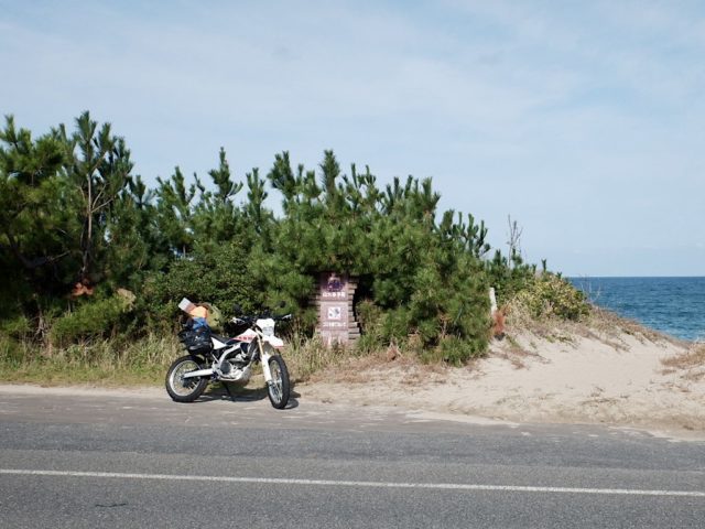 バイクで海岸に下りられるところがあったはずだが、ここではなかったようだ。もっとも、結構フカフカな砂なので荷物満載状態では入らない方がいいだろう。