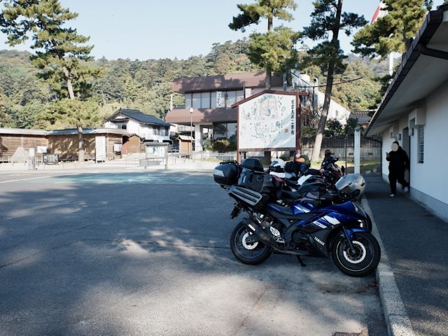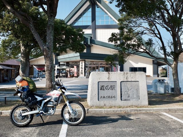 朝7時過ぎに起きて朝食後キャンプ場を出発。海沿いの県道23ではなく、舗装林道?を通ってみる。途中、急こう配の連測ヘアピンなどがあるが、道幅はそれなりにあって特に問題なく走行。鷺峠を越えて下っていくと出雲大社の横に出る。