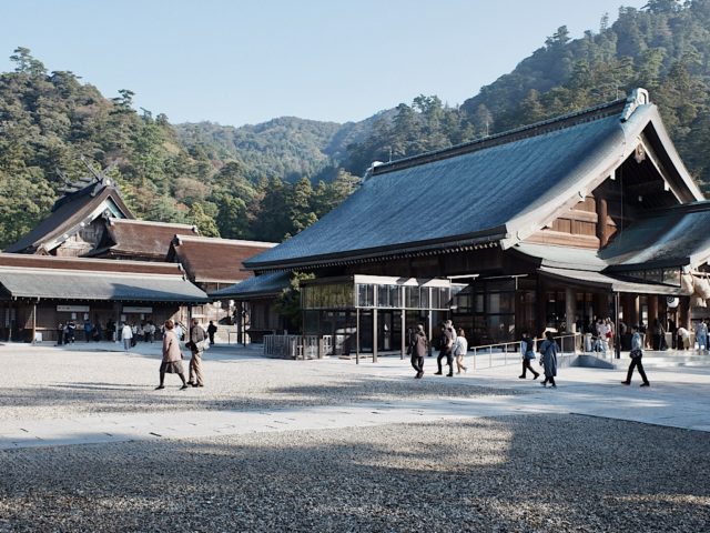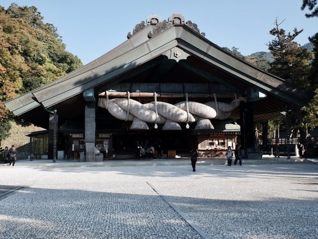 出雲大社は初めてのはず。朝9時頃だが結構観光客が来ていた。