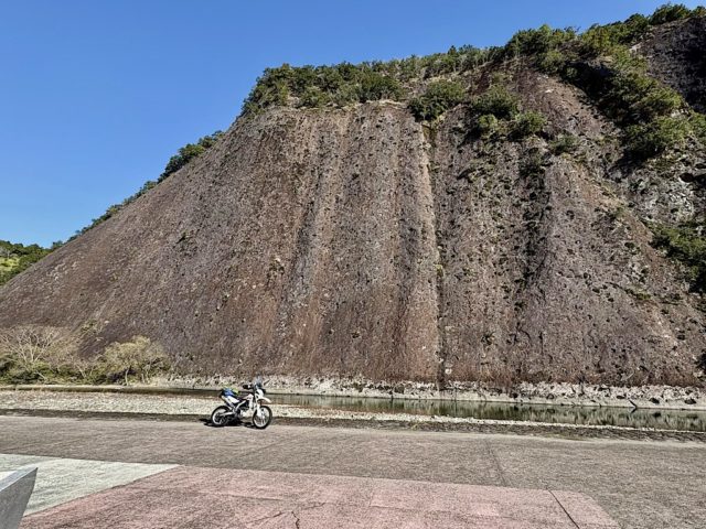 道の駅の対岸には古座川の一枚岩がある。山が一つの岩でできているとのこと。