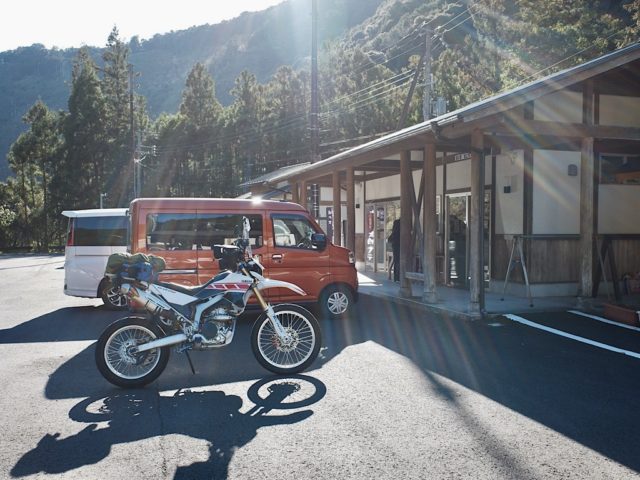県道238→38→43で古座川の支流である小川沿いに山の中へ。途中にある道の駅瀧之拝太郎で休憩。ここも、かなりコンパクトな道の駅。