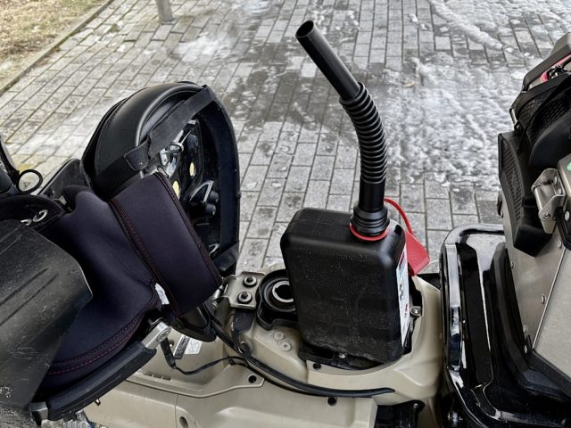 予備の燃料を積んだままフェリーに乗れないので、ここで2Lのガソリンを燃料タンクに戻す。