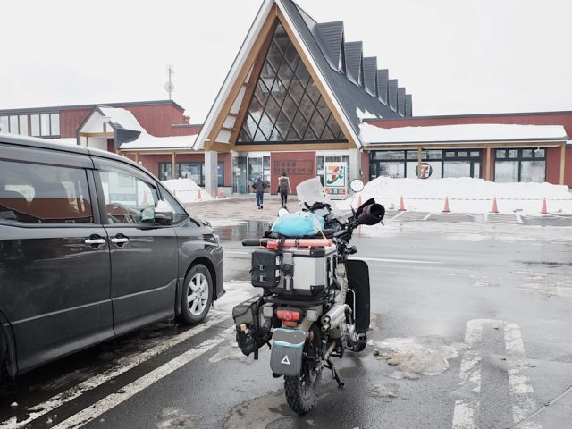 朝9時過ぎに出発。クロネコヤマトで不要な衣類などを発送して身軽に。国道36→337→274→337と札幌市街を避けてバイパスをつないで走る。除雪されていてアスファルトのところが多いが、車の流れが速く片側1車線の区間では気をつかう。途中からは片側2車線が増えてきた。当別の道の駅で休憩。