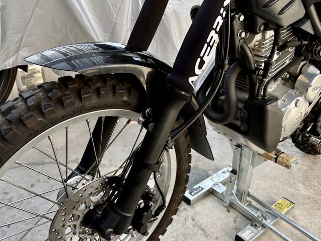 フロントフォークオイル交換、フォークスキンなど装着
