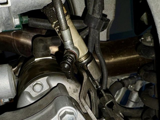 いろいろ作業しているときにマグラ油圧クラッチのスレーブシリンダーのブーツが破れているのを発見。また、周辺にうっすらと油が付着しているようだ。油圧クラッチはミネラルオイル(鉱物油)なので腐食の心配はないが、そのうち作動不良を起こすかもしれない。167マスターには補修部品が設定されているが、スレーブシリンダーの内部部品は販売されておらず、問題がある場合はアセンブリ交換になるようだ。