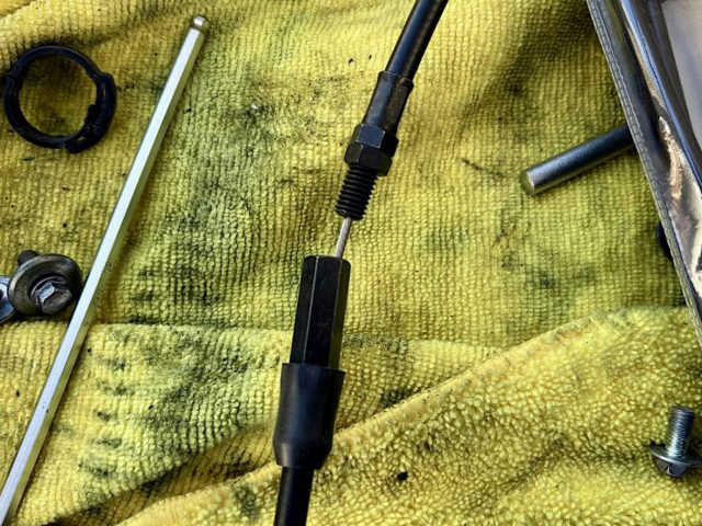 ワイヤ交換およびスクリーン再装着後試走したところ、途中でクラッチが重くなってきた。抵抗が増している感じだったので、帰宅後ケーブルに注油。翌日再装着したら軽くなっていた。