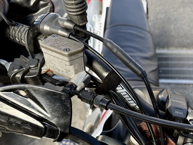 WR250Rにグリップヒーターを取付けたとき、MAGRA油圧クラッチのスリーブシリンダに油漏れを発見した。クラッチ操作自体には問題はなかったが、ツーリングの途中でトラブルになると困るので、純正のワイヤ式に戻した。ブレーキは前後あるので両方同時に壊れる確率は低いが、クラッチは1重系なので故障すると走行困難。ワイヤ式なら応急処置可能な場合(大昔、ワイヤのタイコの部分が取れたので、結目をひっかけて帰ってきたことがある)もあるが、油圧クラッチだと手の施しようがないと予測される。
